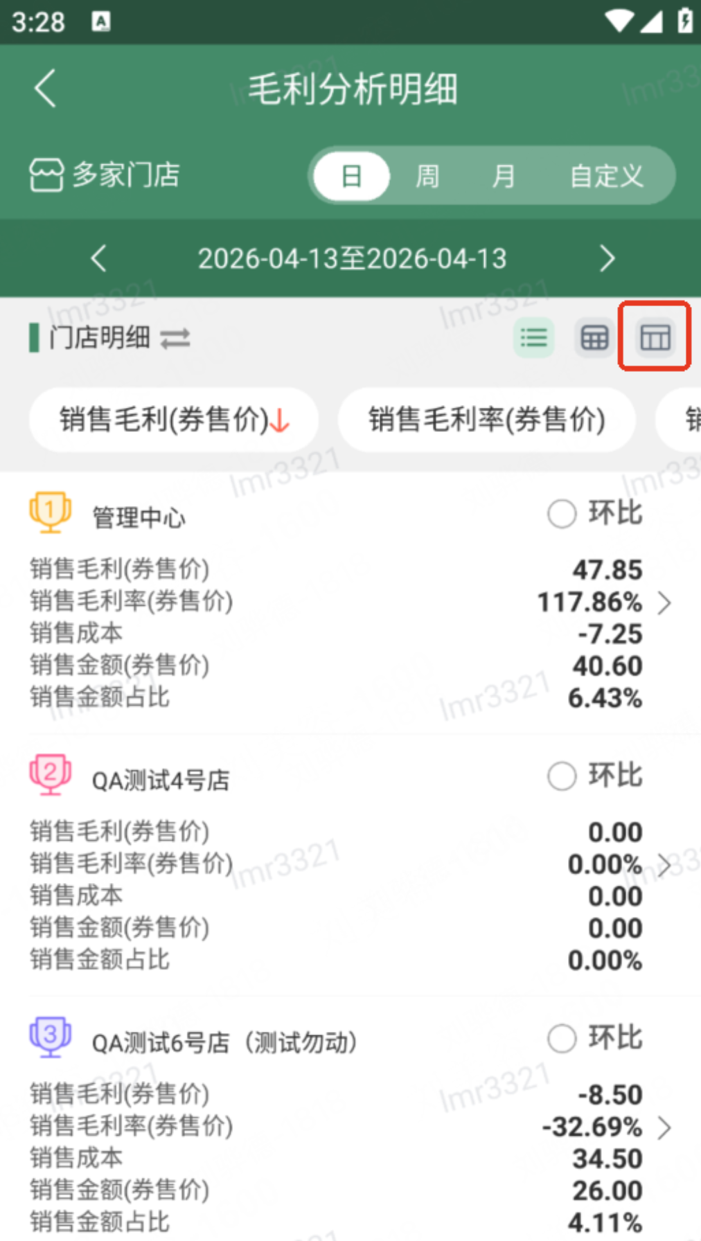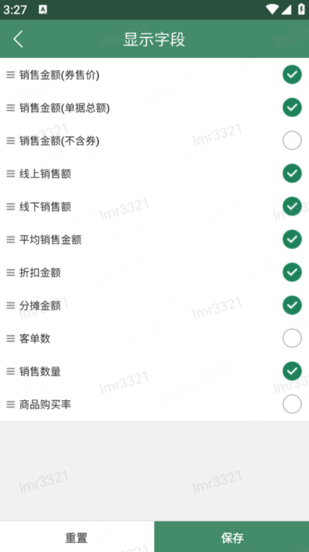 app毛利分析,明细页面,设置显示字段,并且支持排序。