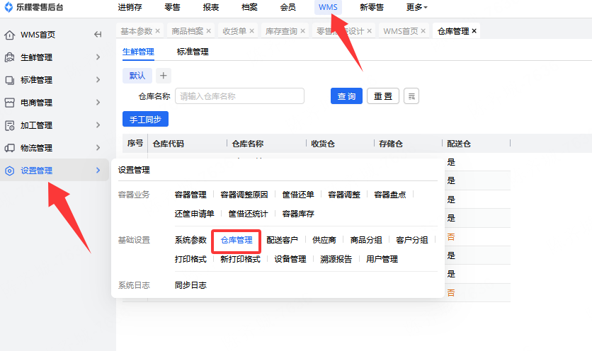 👉【操作路径】:1.WMS-设置管理-仓库管理