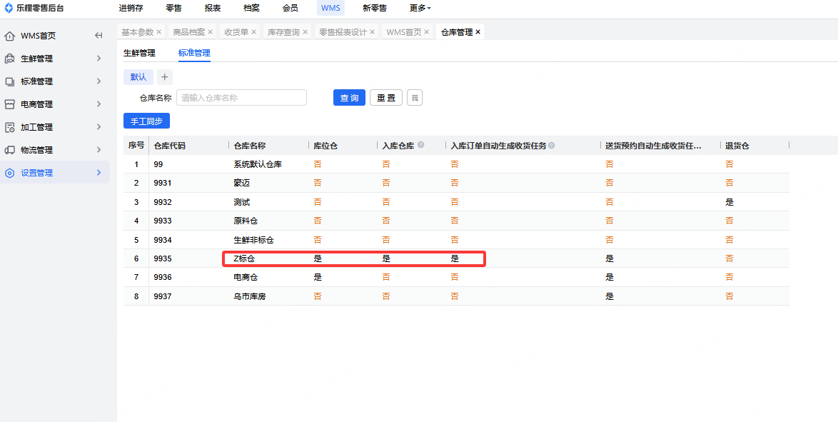 开启入库订单自动生成收货任务需要开启个参数,此参数在WMS的仓库管理里