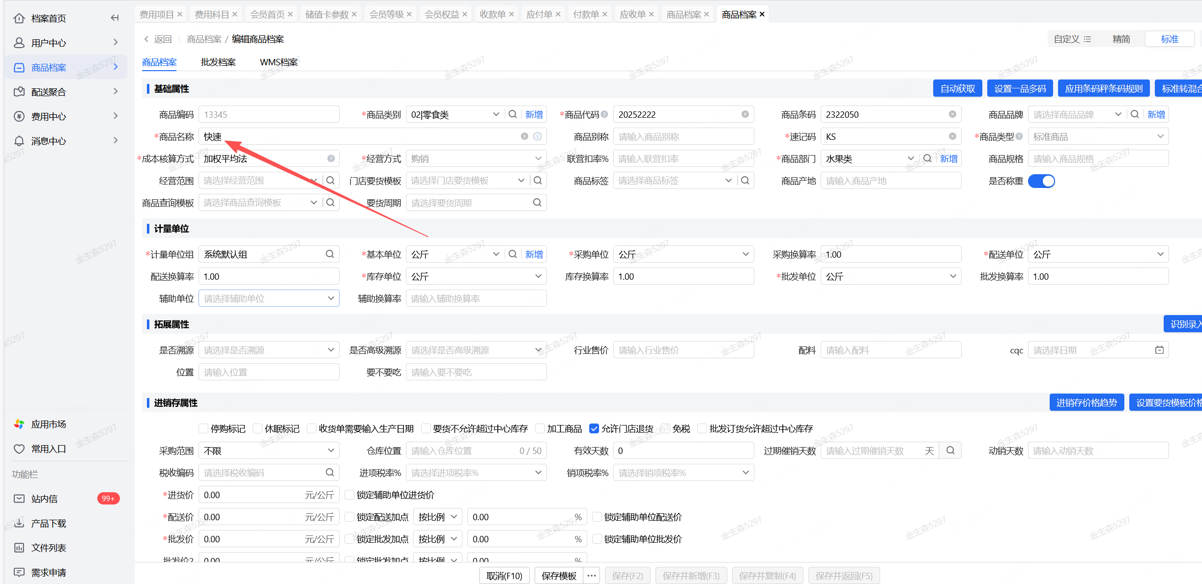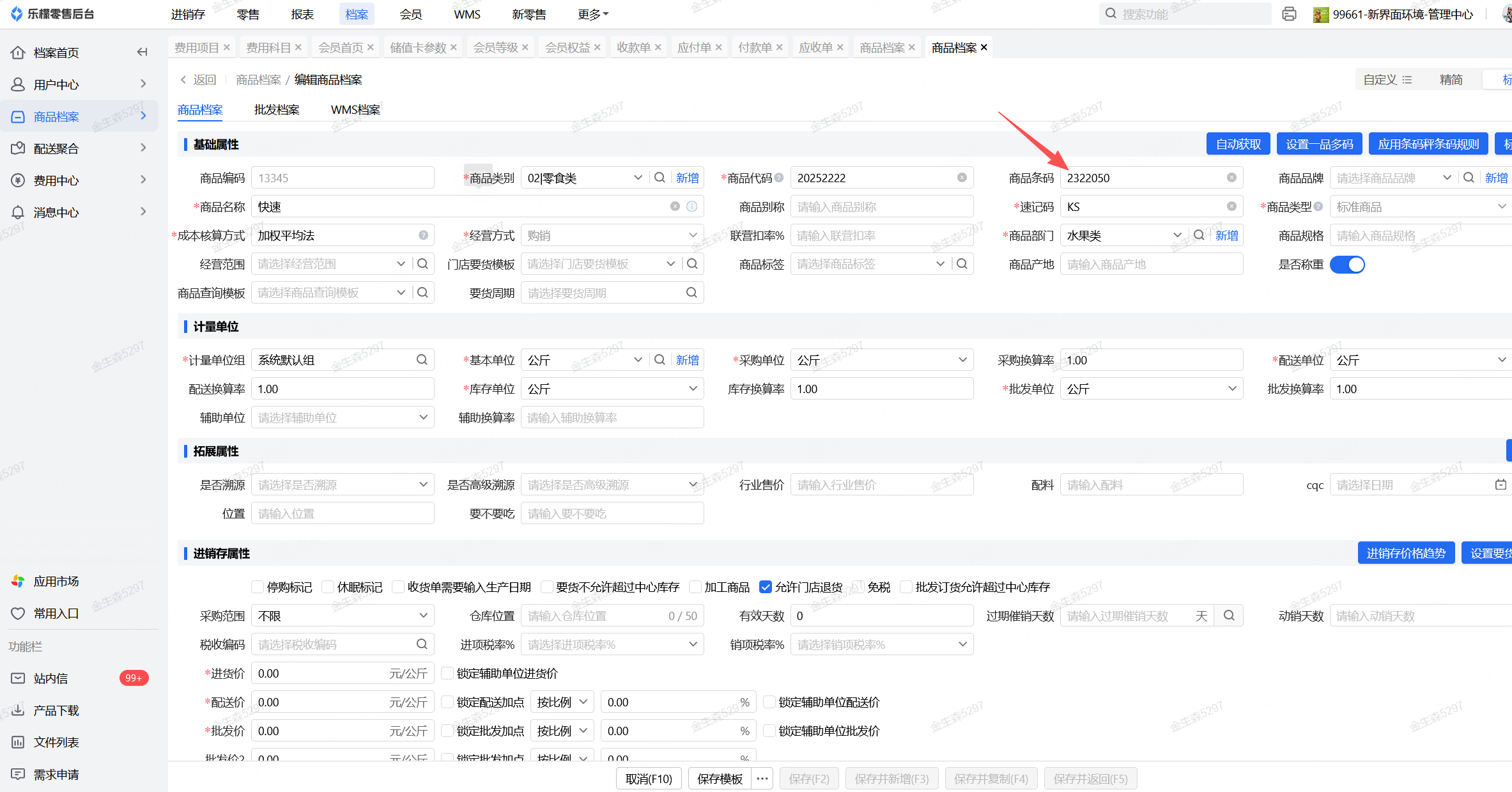 同步于乐檬零售系统的商品档案,不能编辑,仅用于查看,编辑只能ama商品档案。