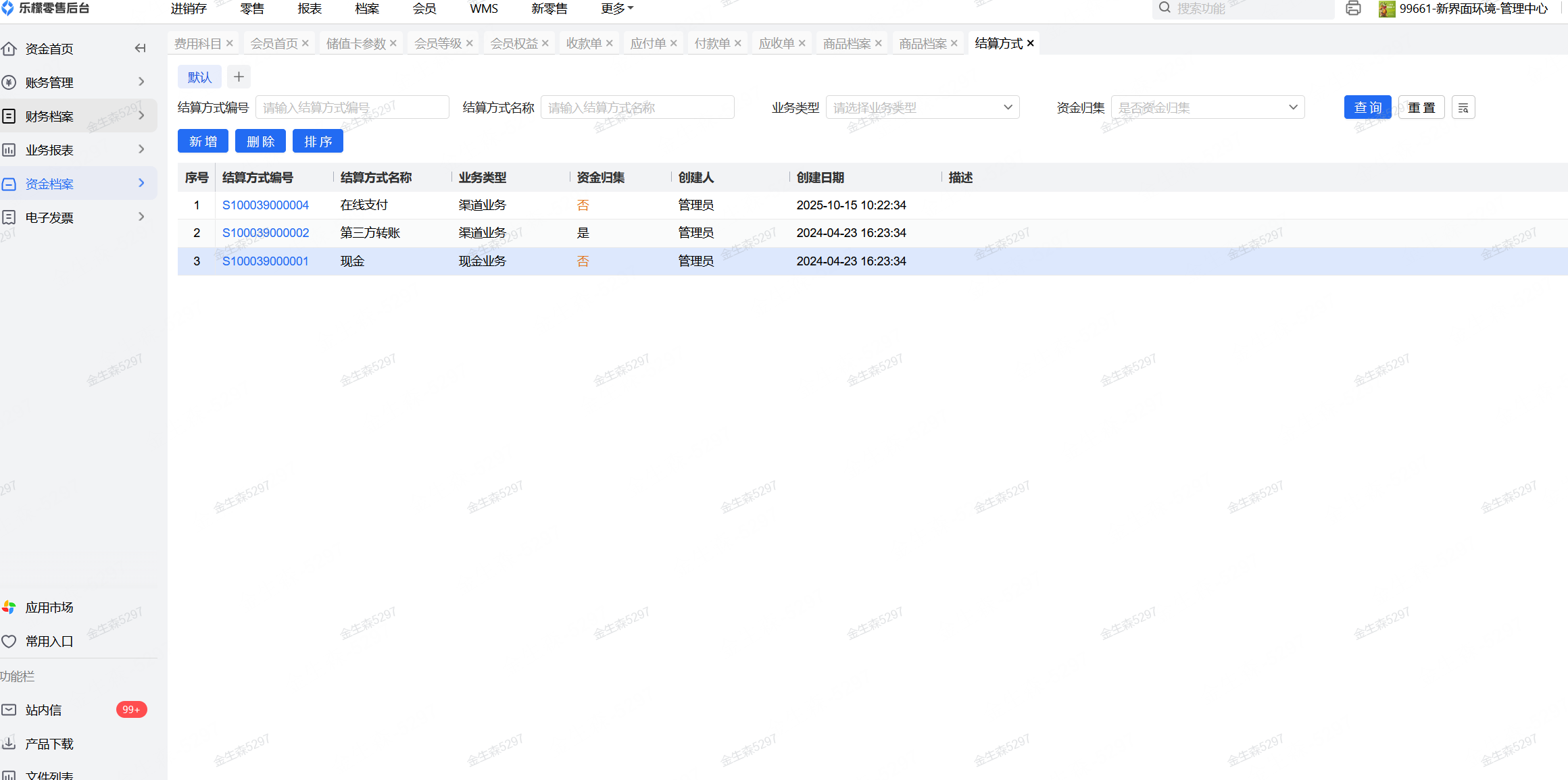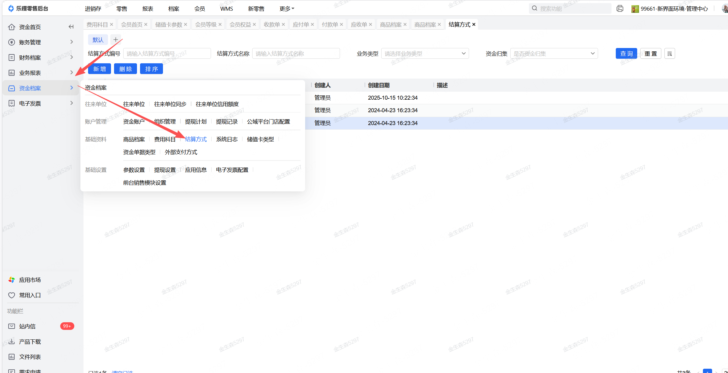 路径:资金档案-基础资料-结算方式