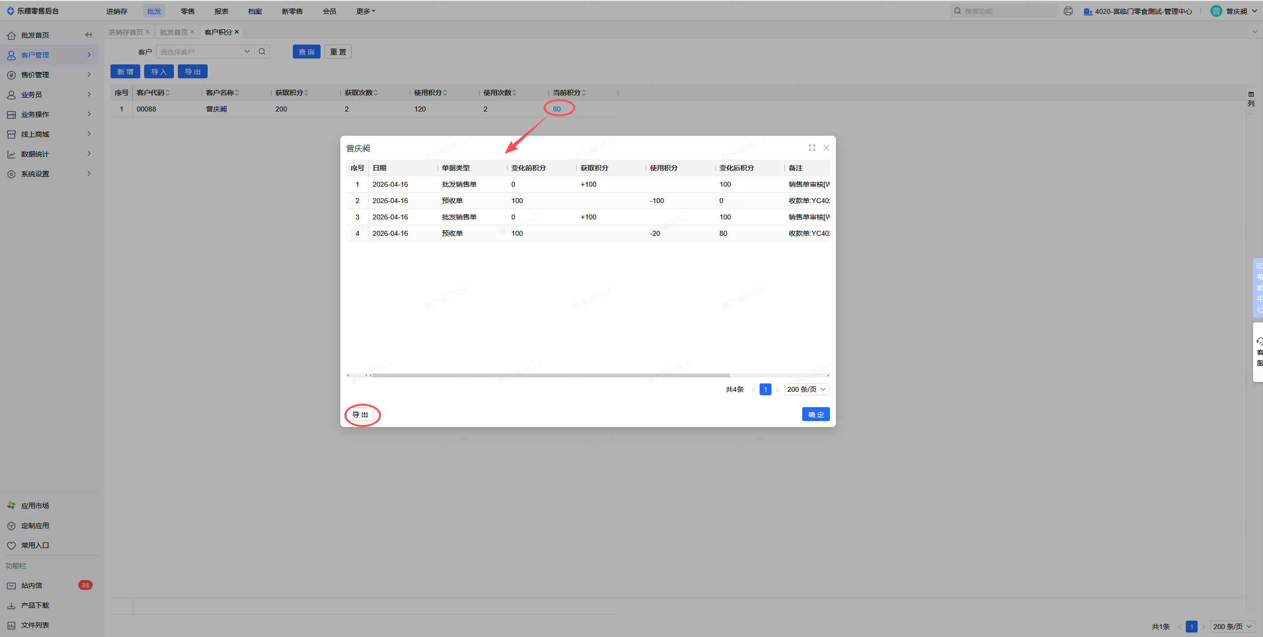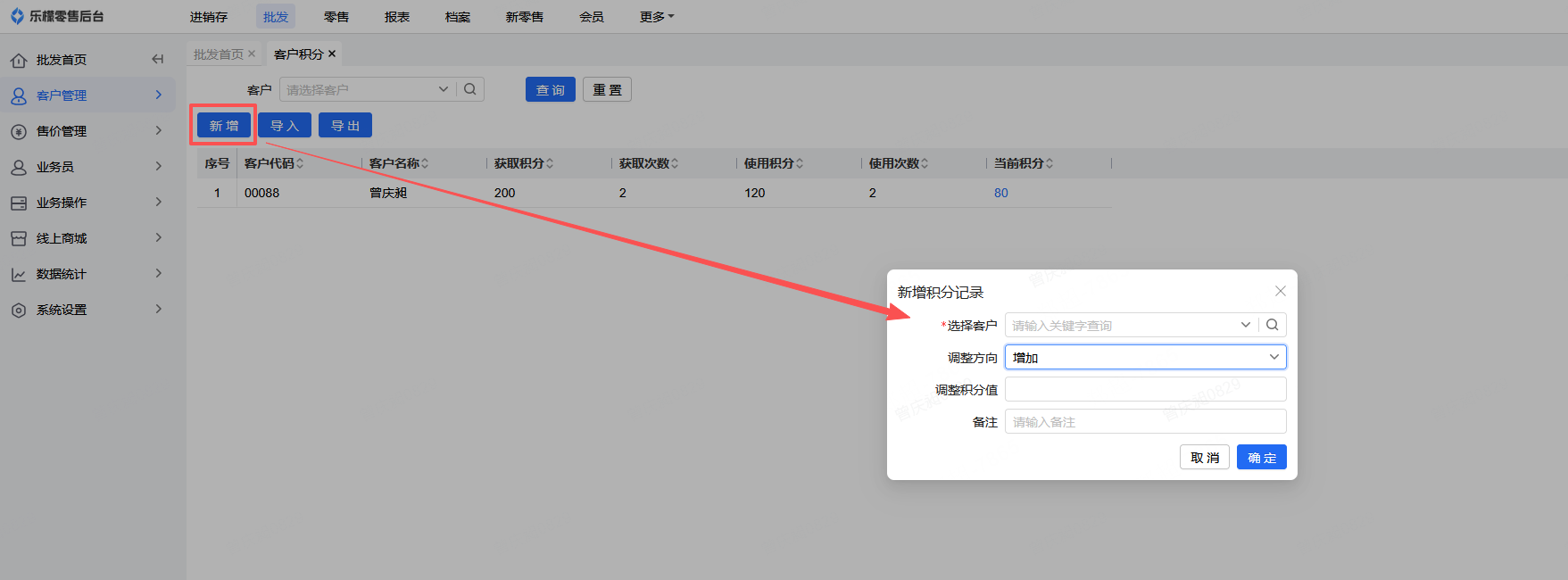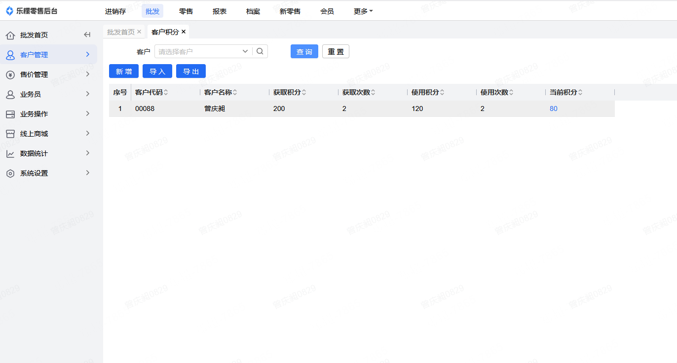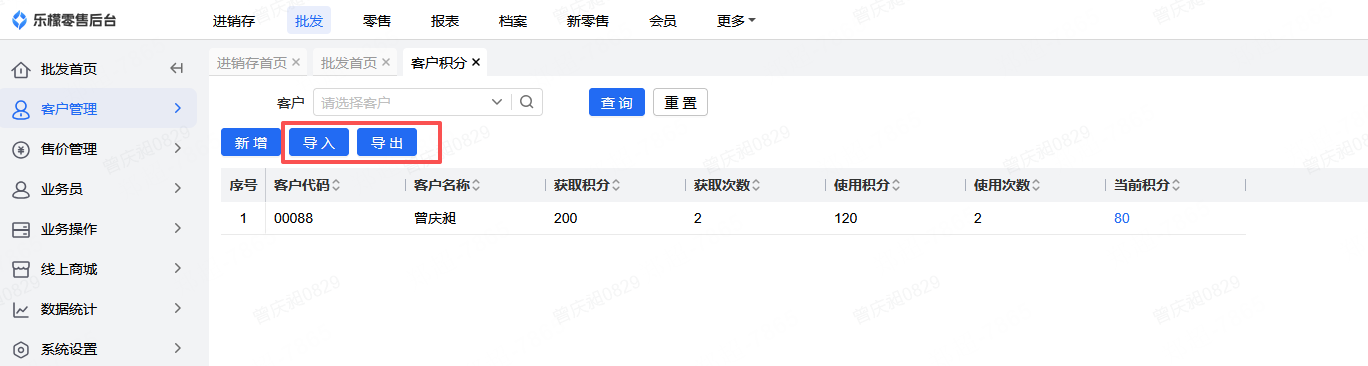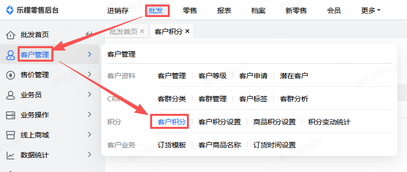 👉【功能路径】:批发-客户管理-客户积分