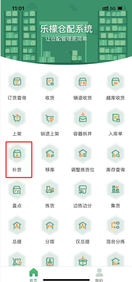 然后就需要去PDA上补货里查看补货的任务,进入确认信息后扫描移入库位码后点击确认,则补货完成,即可继续进行分拣操作