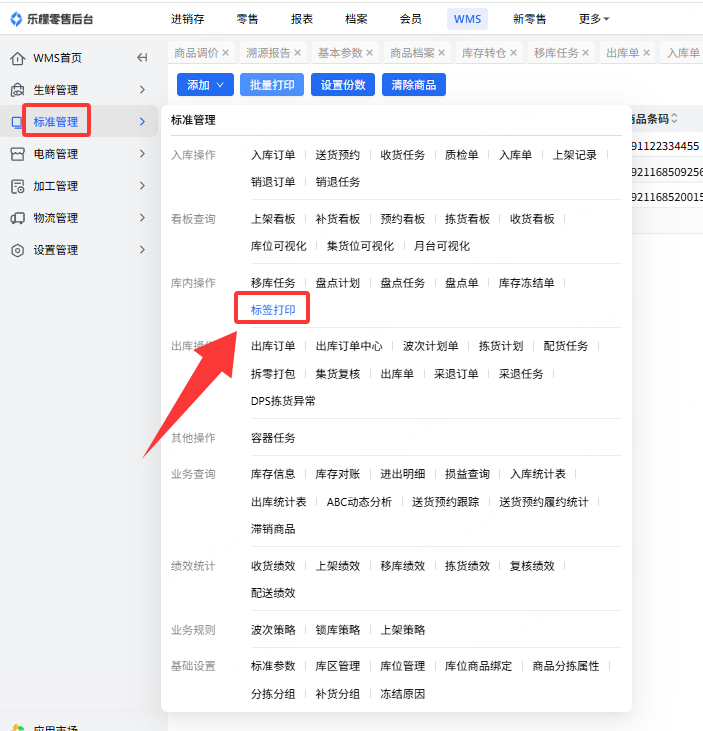 👉【操作路径】:1.WMS-标准管理-库内操作-标签打印