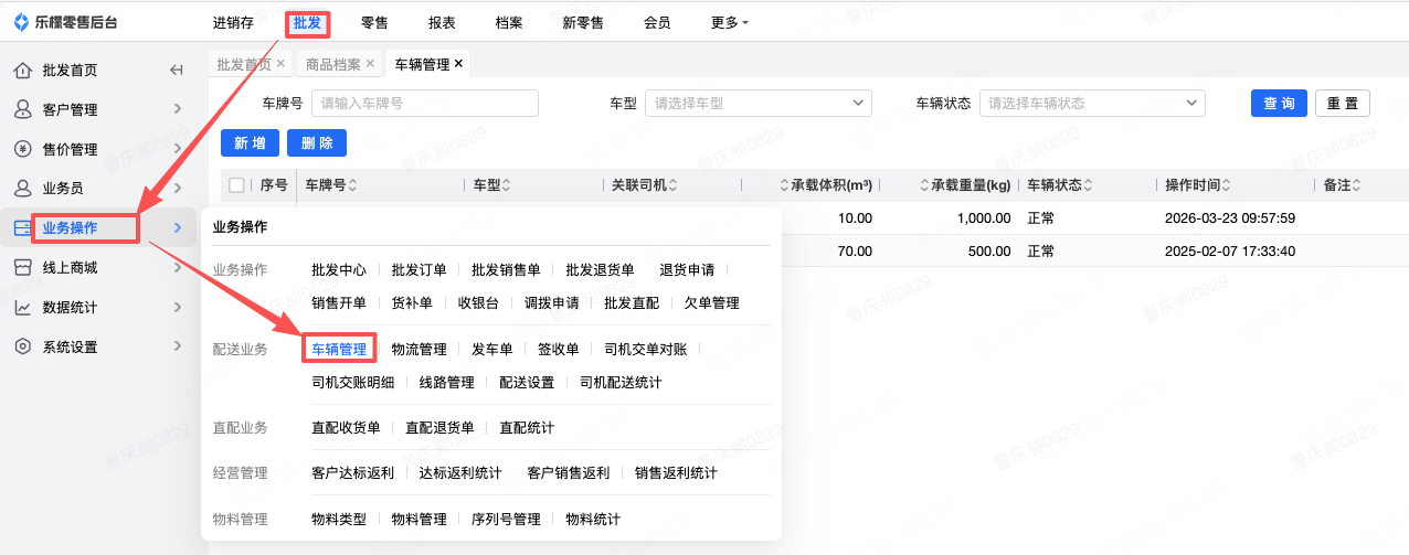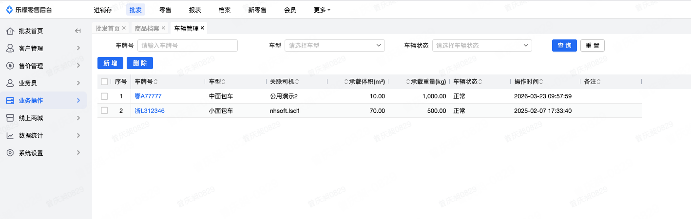 批发商贸公司一般会有自己的车队来配送客户的货物,需要对车辆信息进行维护