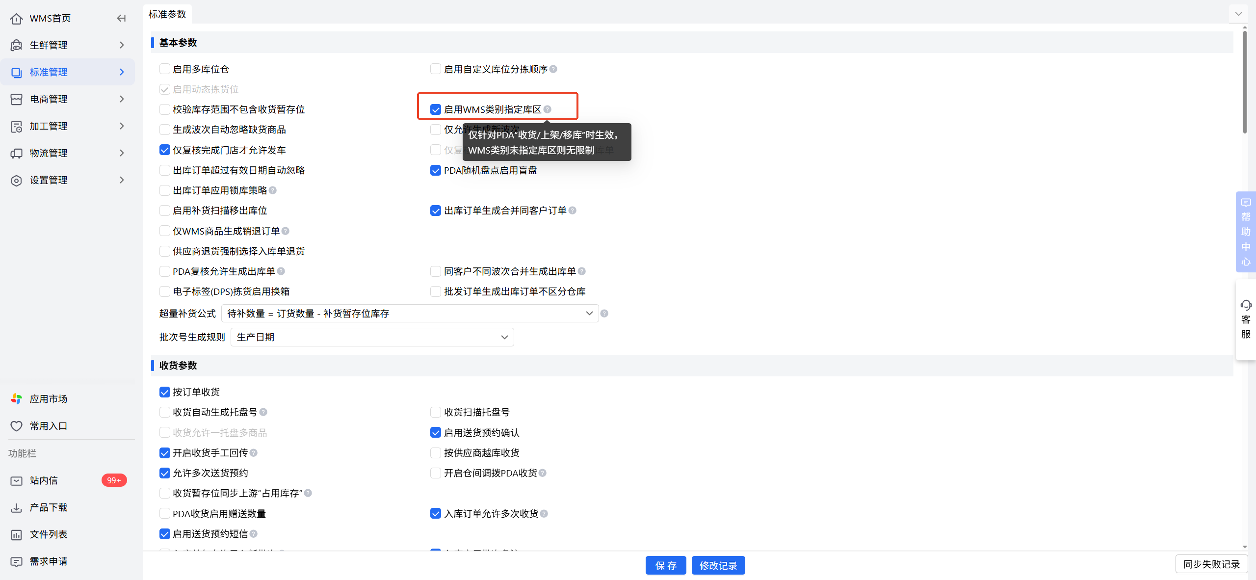 👉【操作路径】:WMS-标准管理-标准参数-基本参数