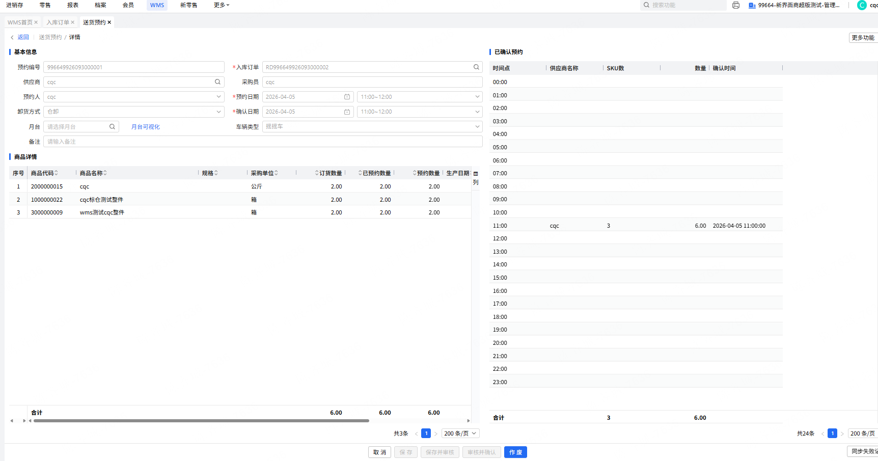 点击单据号进入单据详情里面,商家确认审核之后,预约流程就成功了。预约成功的单据可以在预约看板里面进行查看。